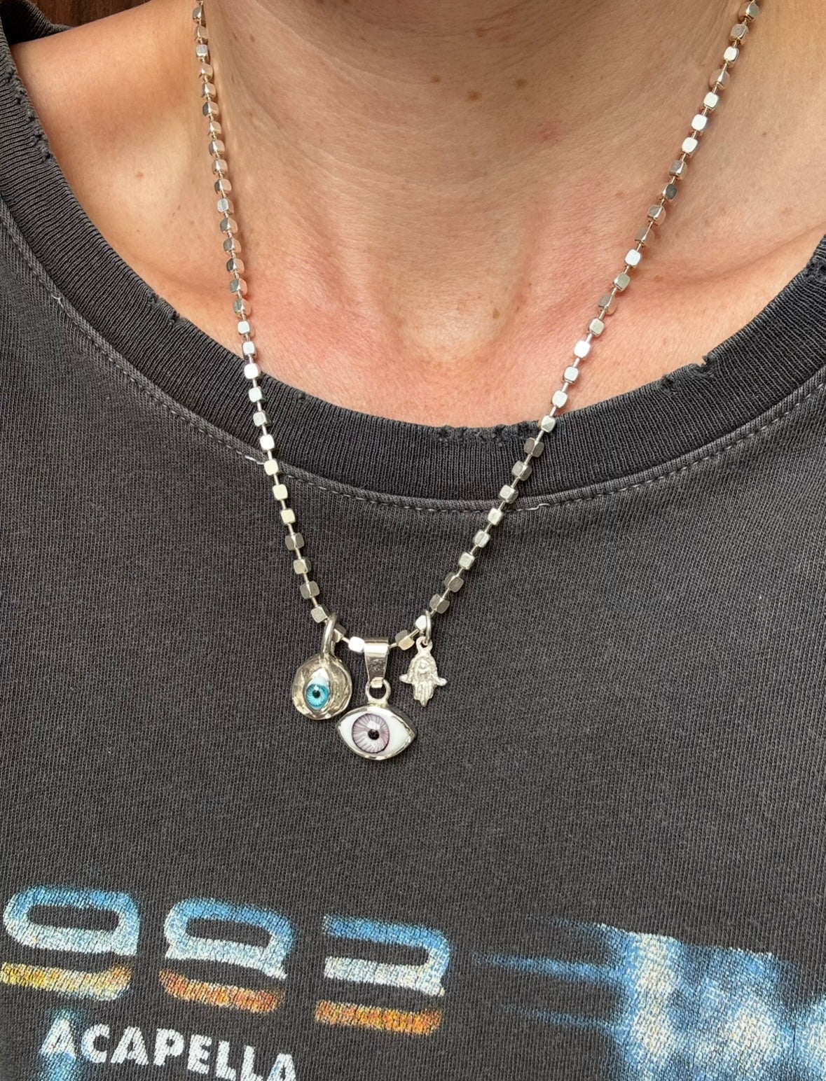 The Juiciest Charm Set! This set of 3 charms includes: a Hamsa Hand (a symbol of protection and good fortune), a Nugget Protector, and a medium-sized Eye Charm. Choose your favorite color combo!